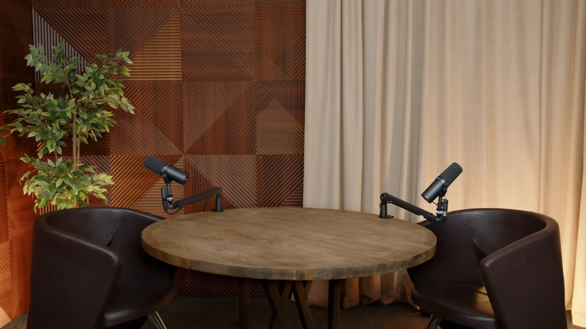 Эта студия подходит для создания высококачественного аудио и видео контента. Запись подкаста, интервью, музыки, песен, чтения книг, контент для курса и другого контенте.